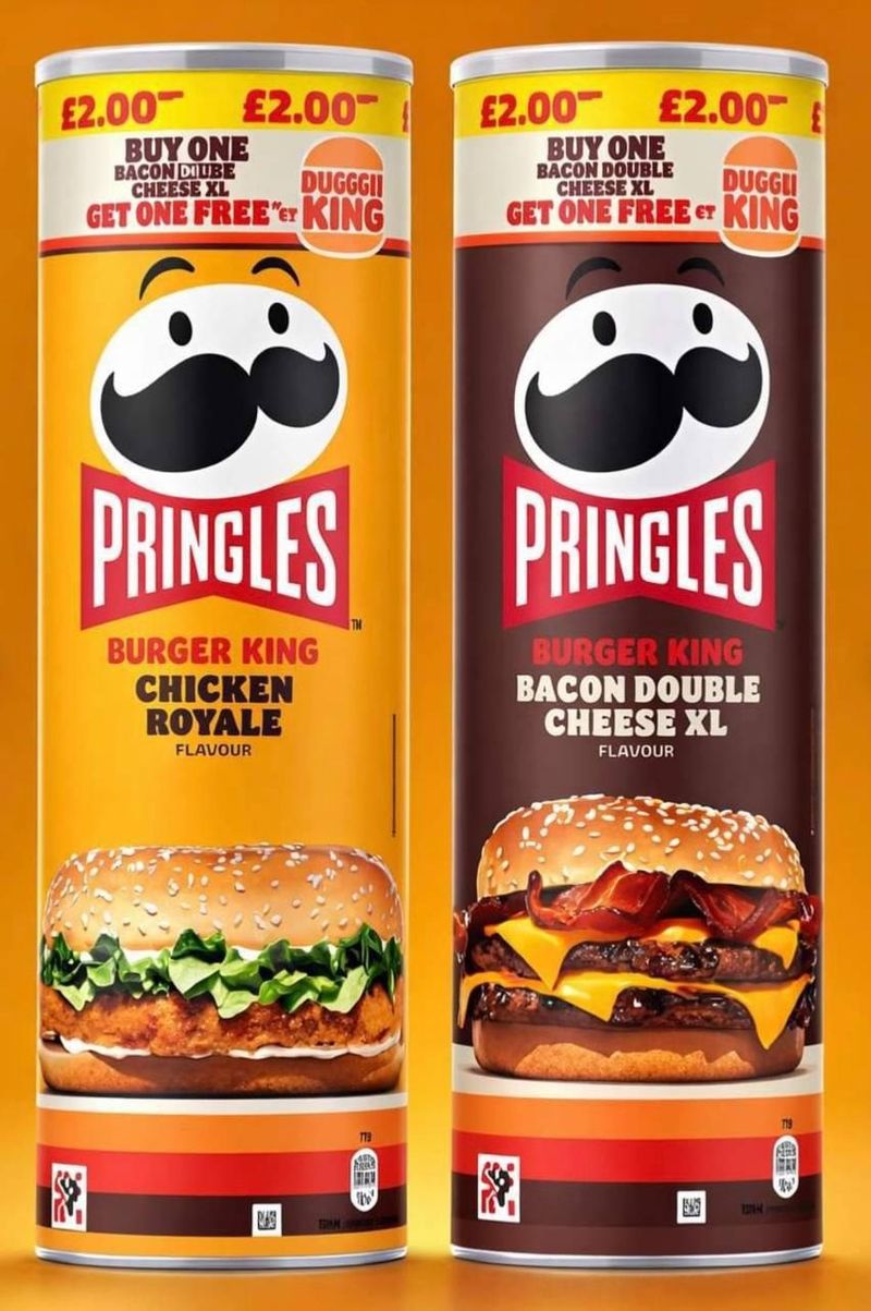 Pringles анонсировал коллаборацию с Burger King, добавив в линейку два новых вкуса: куриный бургер и двойной бургер с говядиной, беконом и сыром. Цена одной банки составит около 212 рублей.