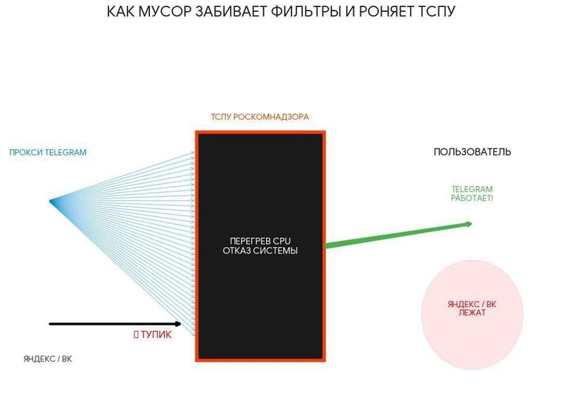 Прокси-сервера Telegram начали массированную DDoS-атаку на систему ТСПУ Роскомнадзора, которая пытается блокировать мессенджер. В ответ на проверки доступности Телеграм заваливает оборудование РКН мусорными запросами, что привело к сбоям в работе WhatsApp, VK, Яндекса и даже сайтов из «белого списка» по всей России.