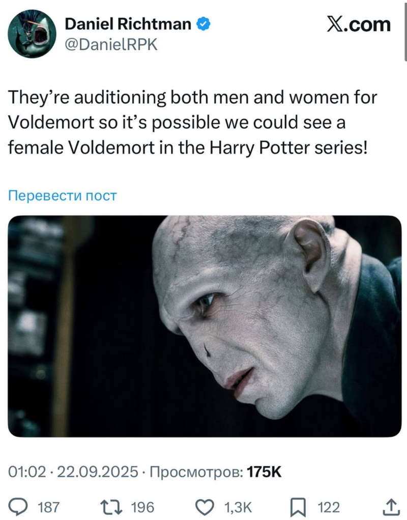 В мире Гарри Поттера грядут новые перемены: по слухам, на роль Волан-де-Морта пробуются актеры обоих полов, что может изменить представление о злодее.
