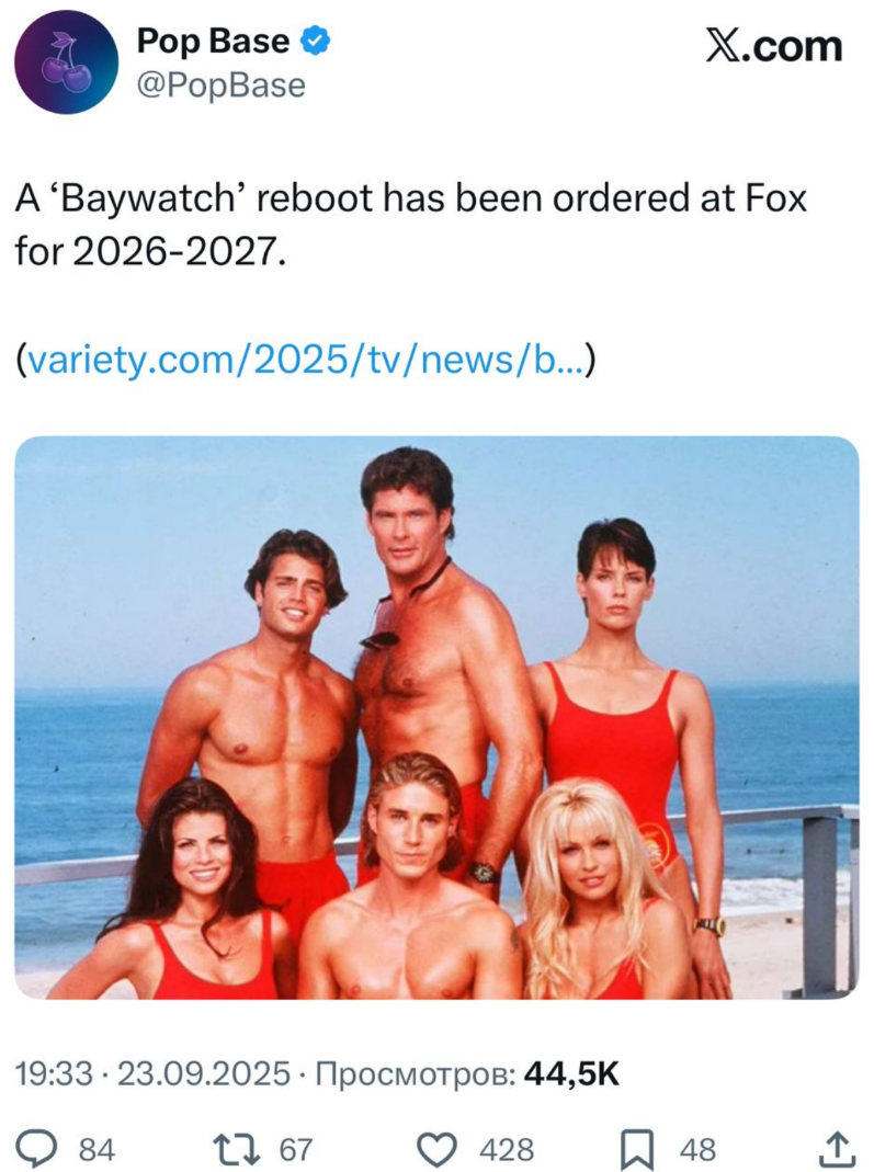«Спасатели Малибу» возвращаются: Fox заказал перезапуск на 2026-2027 годы
