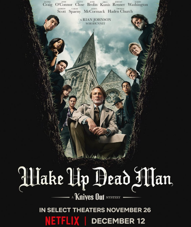 - В новой части Бенуа Бланк расследует таинственное убийство в церковной общине. У каждого персонажа в этой истории есть свои скрытые секреты и скелеты в шкафу.