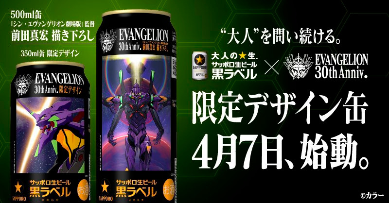 Японские пивовары из Sapporo представили лимитированное пиво в честь 30-летия «Евангелиона». Напиток разливают в банки по 350 и 500 мл.