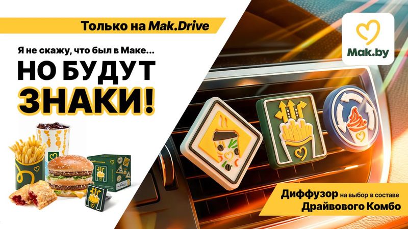 Сеть McDonald's в Беларуси запустила акцию с пин-диффузорами, которые пахнут как популярные продукты заведения. Их можно получить при покупке Драйвового комбо за почти 800 российских рублей, даже если у вас нет машины.
