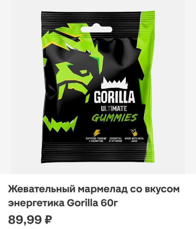 В российских магазинах появился мармелад от Gorilla, который обещает заряд энергии благодаря кофеину и таурину, а стоит около 90 рублей.