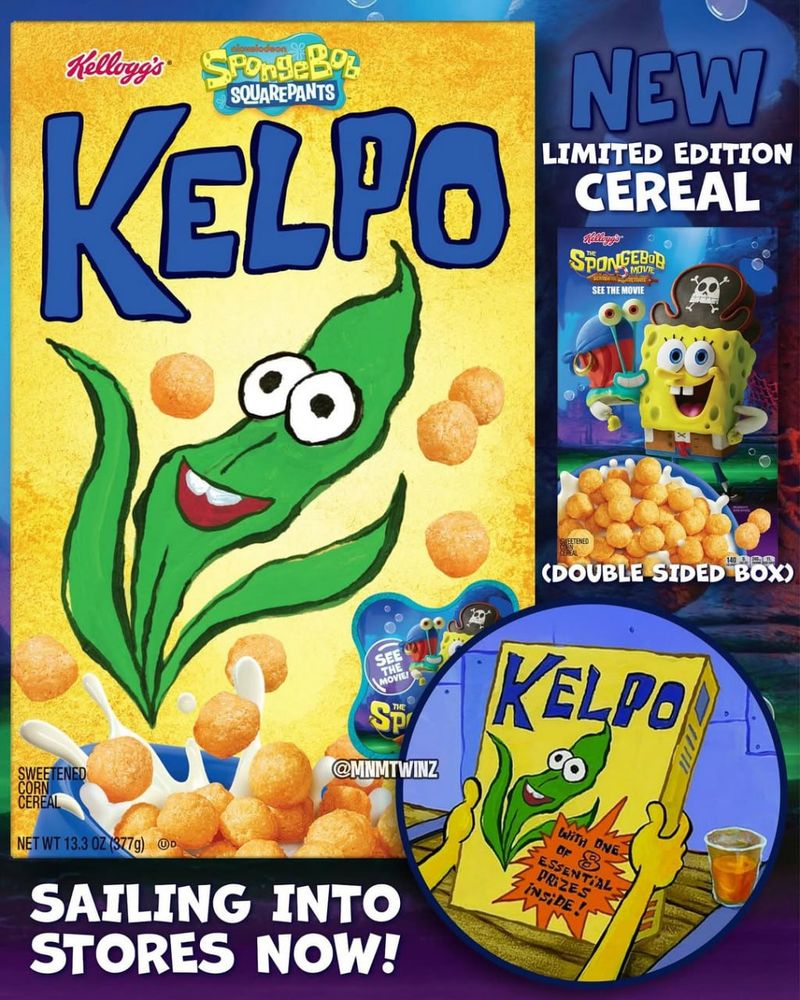Nickelodeon и Kellogg's выпустили ограниченную серию кукурузных шариков Kelpo, которые обожает Спанч Боб в мультсериале. Упаковка точно копирует дизайн из шоу, делая завтрак мечтой для фанатов.
