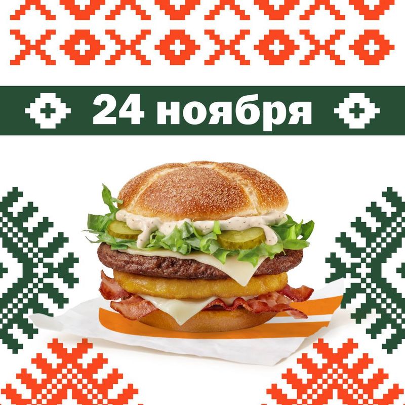 Сеть фастфуда «Вкусно — и точка» анонсировала выпуск белорусского меню 24 ноября, добавив в ассортимент драники, бургеры и напитки.