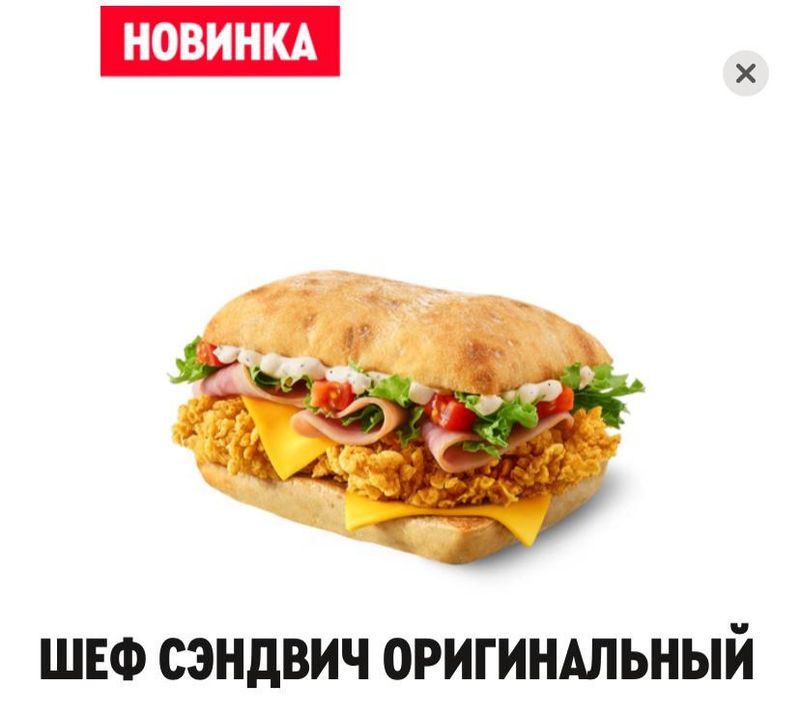 Шеф Сэндвич Оригинальный, Острый и облегченная версия Лайт. Главное отличие от классических позиций — использование воздушной пшеничной чиабатты вместо привычной булочки с кунжутом.