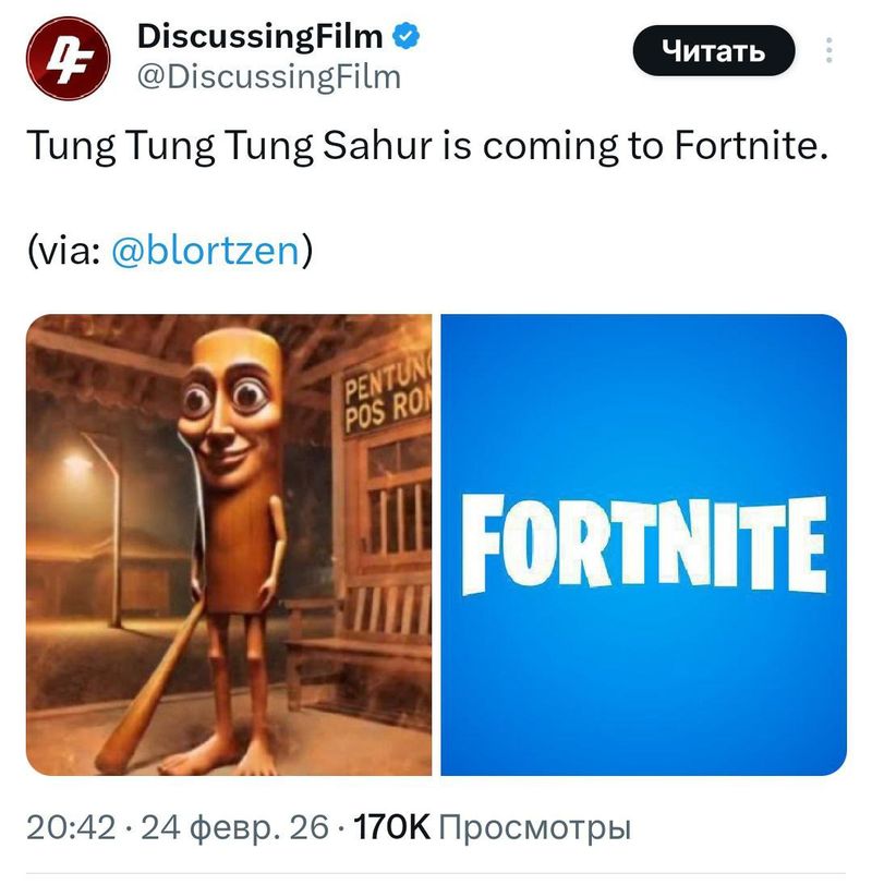 • Тун Тун Тун Сахура, известный по мемам о брейнроте, теперь доступен как скин в Fortnite. Это неожиданное добавление оживило старый интернет-фольклор среди геймеров.