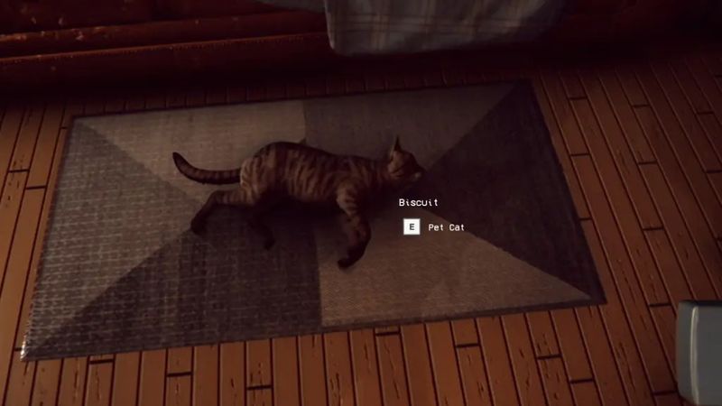 По всему дому за вами следует черный кот. В моменты паники вам нужно буквально замереть и погладить питомца. Процесс мурлыканья и тактильного контакта (сопровождающийся приятной вибрацией геймпада) постепенно возвращает зрение в норму и восстанавливает шкалу рассудка.
