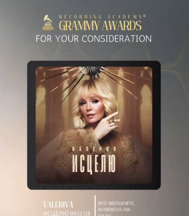 - Певица Валерия вошла в историю, получив номинацию на премию «Грэмми» за свою поп-песню. Это первый случай, когда российская поп-музыка претендует на такую награду.