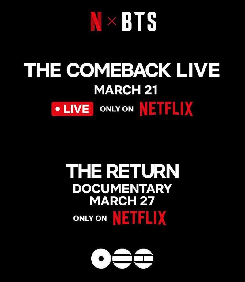 уже 27 марта на платформе выйдет полнометражный документальный фильм «BTS: THE RETURN». Режиссером выступил Бао Нгуен, известный по хиту «Величайшая ночь в поп-музыке». Фильм расскажет о процессе воссоединения участников в Лос-Анджелесе и записи их пятого студийного альбома.
