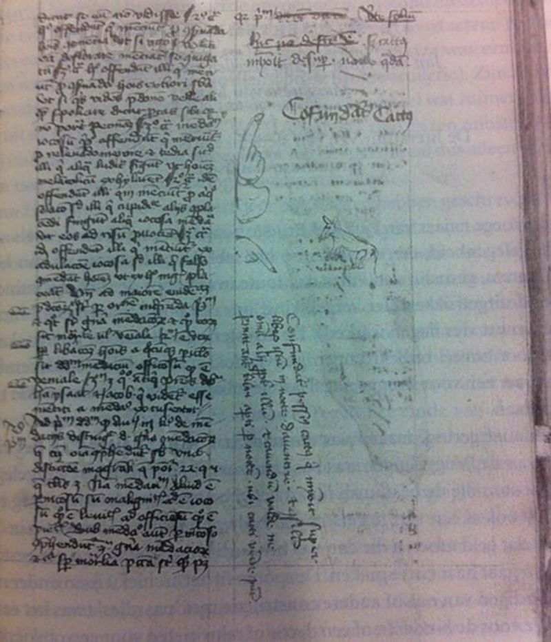 В 1420 году переписчик из Девентера оставил рукопись открытой на ночь, и кот помочился на неё. В ответ человек нарисовал карикатуру с проклятием, предупредив других о кошачьей угрозе.