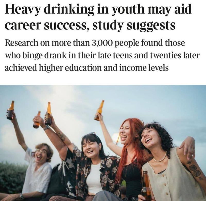 Норвежские исследователи выяснили, что те, кто активно бухает в юности, чаще становятся успешными в будущем. Всё дело в социальных связях, которые завязываются на тусовках.