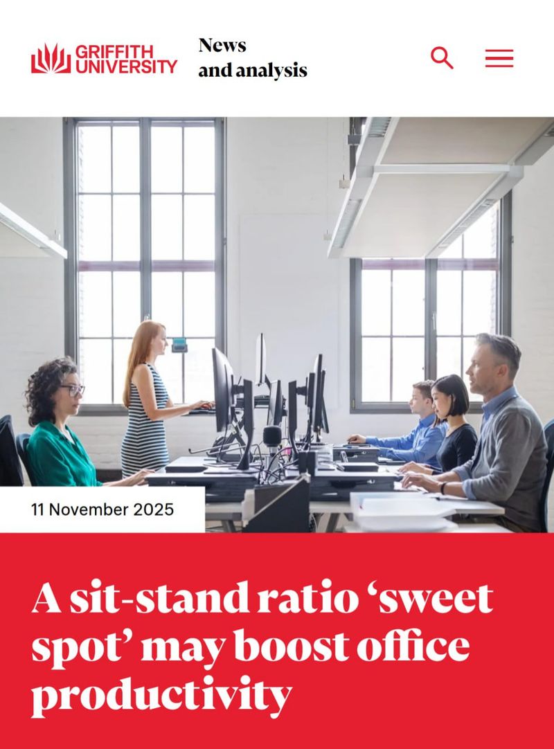 - Учёные из Университета Гриффита провели исследование о влиянии поз на продуктивность в офисе. Они проанализировали данные сотен работников и вывели оптимальное соотношение.