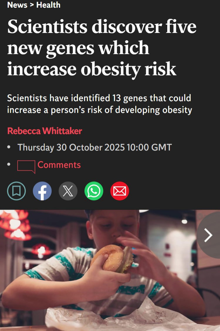 - Учёные проанализировали данные 850 тысяч человек из разных стран и обнаружили 13 генов, связанных с ожирением. Среди них 8 были известны ранее, а 5 оказались новыми открытиями.