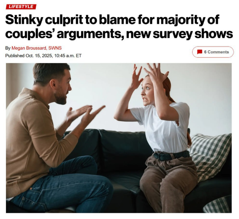 Опрос 2000 американцев выявил, что 6 из 10 пар ругаются из-за вони, будь то запах тела, мусора или питомцев.