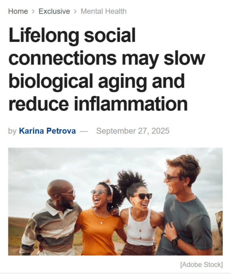 - Исследователи рекомендуют активно поддерживать социальные связи для замедления старения. Встречи с корешами теперь можно считать вкладом в собственную молодость и долголетие.