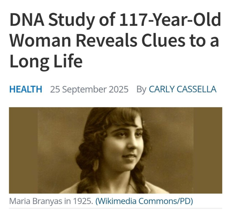 - Учёные проанализировали ДНК 117-летней Марии Брааньянс и обнаружили в нём уникальные геномы. Эти гены оказались ключевыми для её долголетия, превосходя влияние спорта и питания.