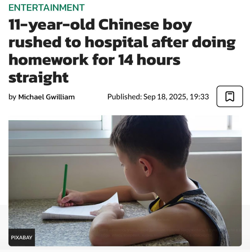 В Китае мальчика госпитализировали с опасным состоянием дыхания и руками в форме «куриной лапки» после марафона учёбы под давлением родителей.