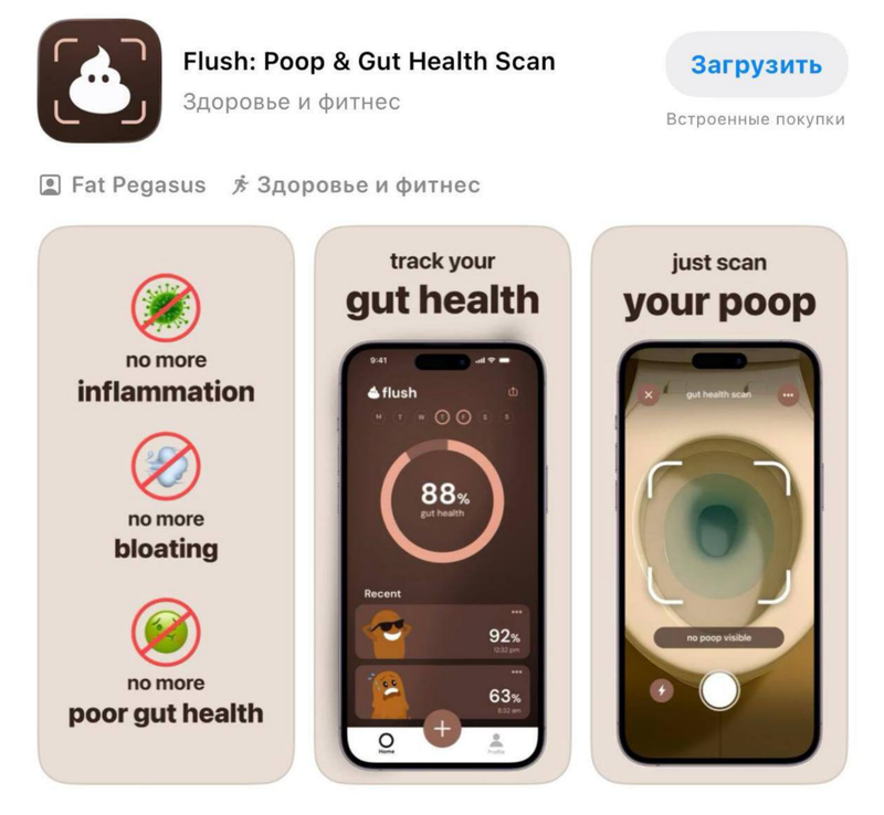 Новое приложение Flush использует ИИ для анализа кала по 20 параметрам, включая микрофлору и уровень стресса. Оно предлагает трекер прогресса и рекомендации по питанию.