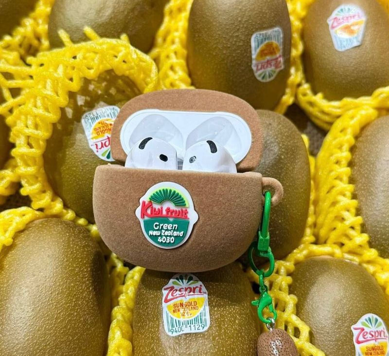 В Китае появился необычный чехол для AirPods, имитирующий киви — шершавый, как настоящий фрукт, и с фирменной наклейкой, цена около 320 рублей.