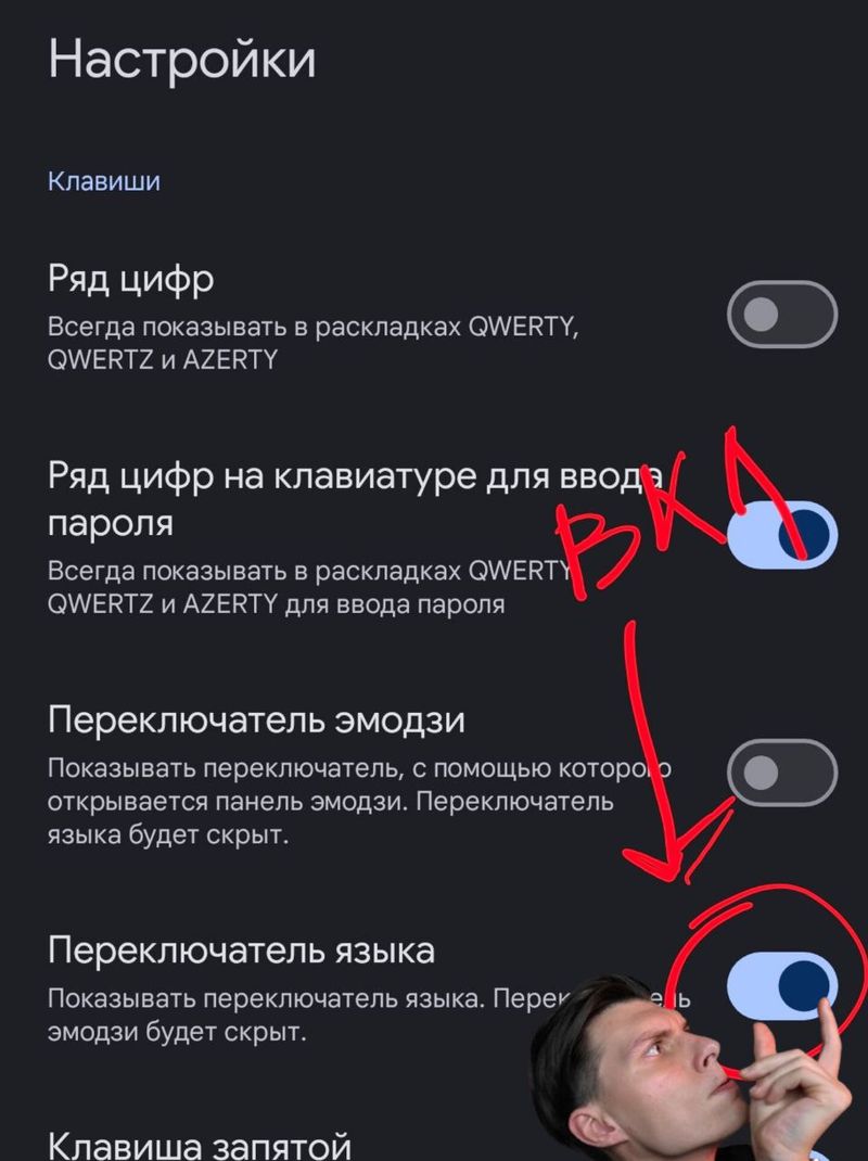 - Не стоит паниковать, потому что переключатель языков можно легко вернуть обратно. Для этого нужно зайти в настройки Gboard и активировать соответствующую опцию.