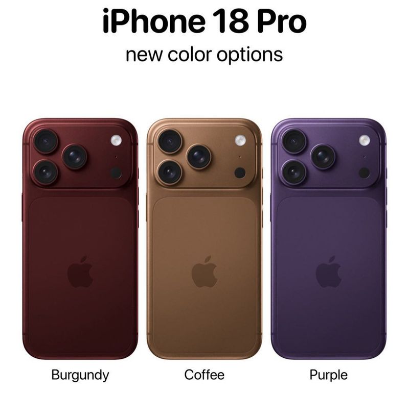 iPhone 18 Pro покажут в трёх новых цветах: бордовый, кофейный и фиолетовый