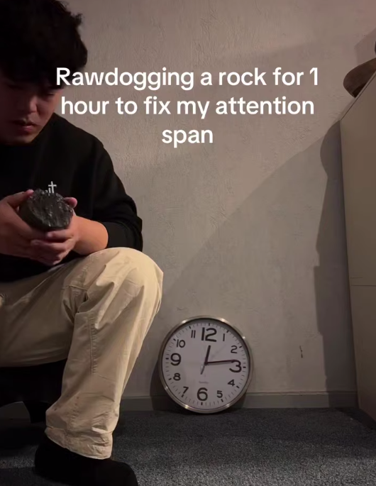 Молодёжь нашла неожиданный способ сократить экранное время: они просто сидят с булыжником в руках по часу в день. Практикующие уверяют, что метод перепрошивает мозг и восстанавливает концентрацию.