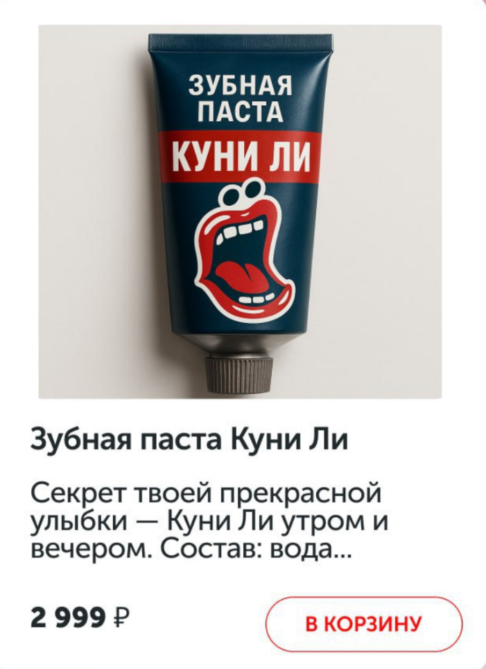 Ёбидоёби выпустили зубную пасту «Куни Ли» за 2999₽: улыбайтесь, но не слишком широко