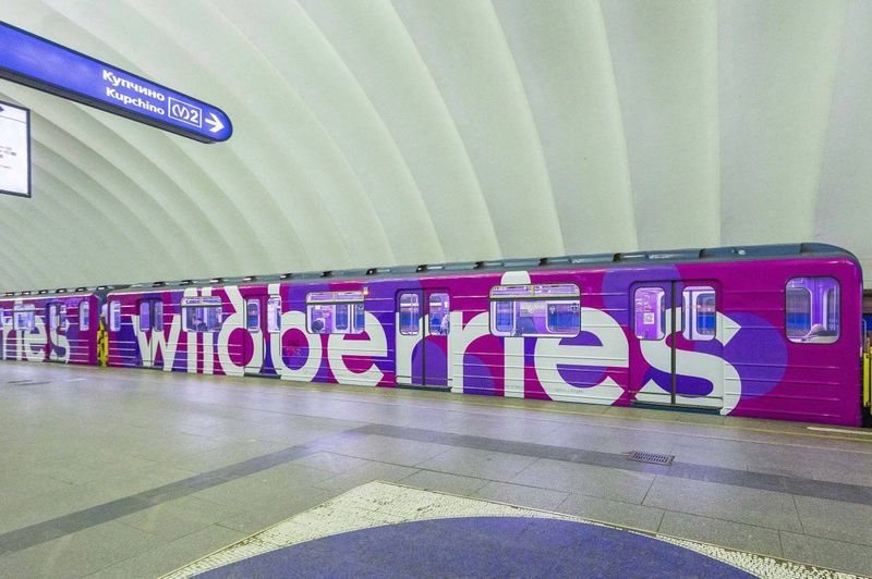 - В Санкт-Петербурге на синей ветке метро запустили тематический поезд от маркетплейса Wildberries. Вагоны полностью оформлены в фирменном стиле WB с яркими цветами и логотипами.