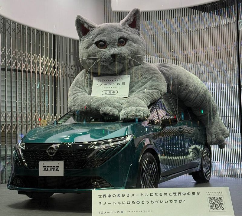 Автопроизводитель Nissan разместил огромную фигуру кота на крыше автомобиля, чтобы повысить интерес покупателей, и эта необычная стратегия неожиданно стала вирусной.