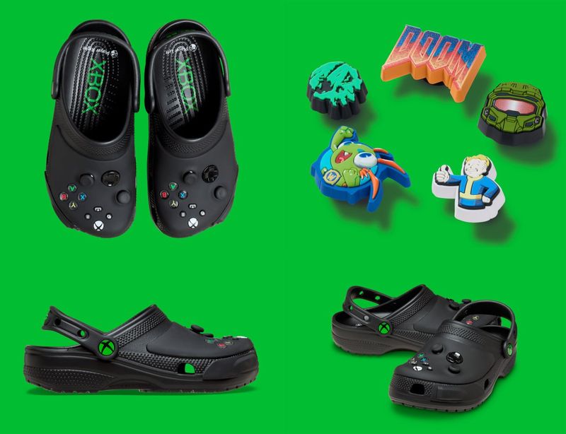 Microsoft и Crocs представили коллаборацию — кроксы в дизайне геймпада Xbox Series с кнопками и стиками, доступные за $85 с джиббитсами по франшизам Xbox.