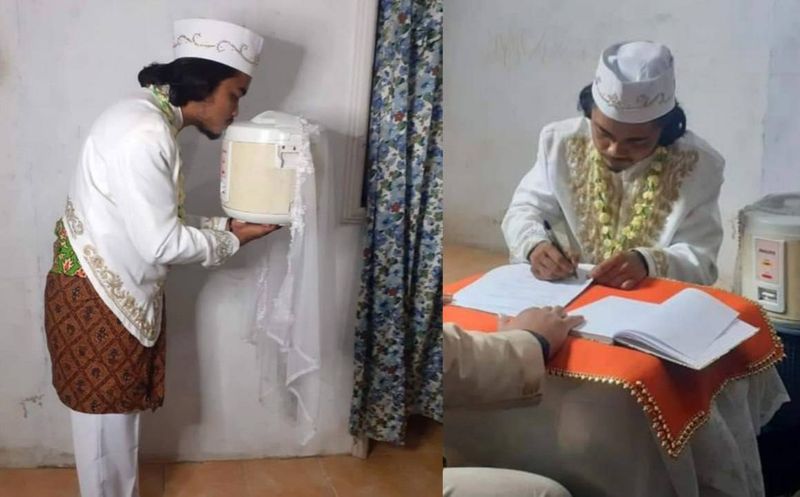 - Индонезиец организовал полноценную свадебную церемонию, где в роли невесты выступила рисоварка в фате. Он поцеловал крышку устройства и восхищался его качествами как супруги.