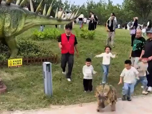 В парке динозавров в Чанчжоу оживили трицератопса, надев костюм на робота Unitree Go2. Механические динозавры теперь свободно бродят среди посетителей, вызывая восторг у детей.