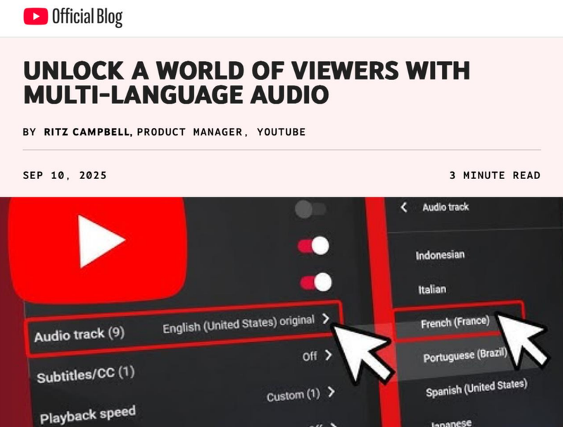 YouTube внедряет автодубляж на русский: нейросеть Gemini будет озвучивать ролики в реальном времени